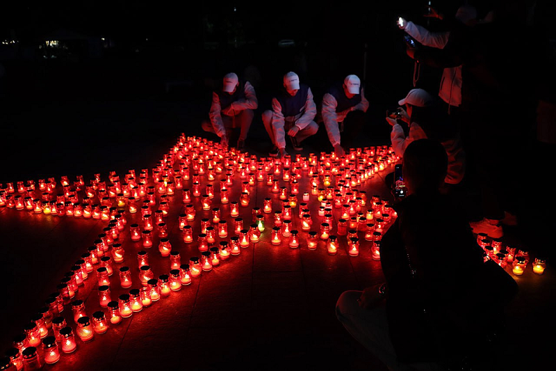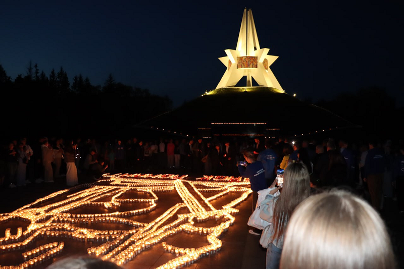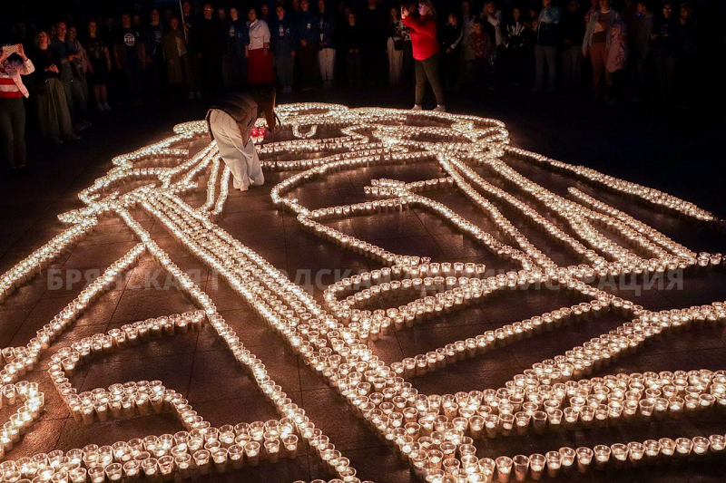 Самой зрелищной частью ночной акции стала гигантская огненная картина в память о Великой Отечественной войне у подножия Кургана Бессмертия. Перед мемориалом лампадами выложили надпись «БРЯНСК ПОМНИ» и фигуру советского солдата-победителя.