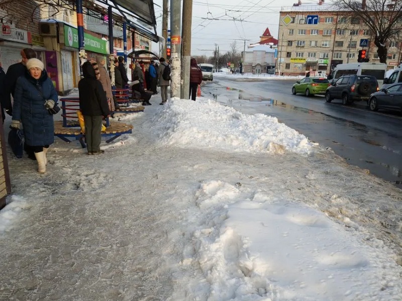 Самая большая остановка общественного транспорта Бежицы — остановка «Рынок» в сторону стальзавода — завалена снегом и скована наледью. Она ни разу с момента начала сильных снегопадов не чистилась и попросту опасна для многочисленных пассажиров, дожидающихся здесь общественного транспорта.